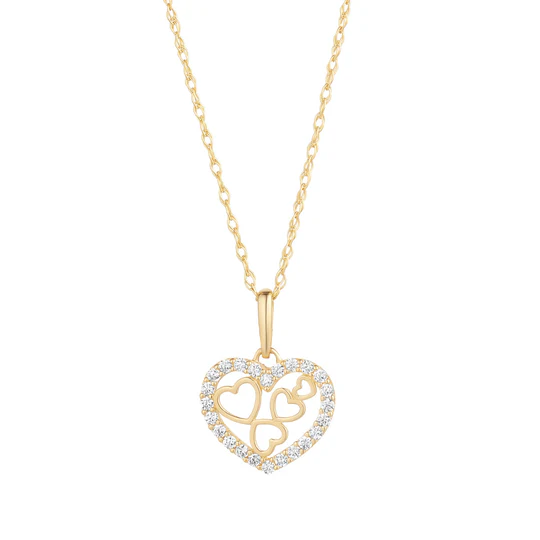 9CT GOLD CZ HEART WITH HEART INLAY PENDANT