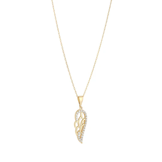 9CT GOLD CZ ANGEL WING PENDANT